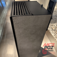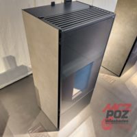 Messeneuheit von der Progetto Fuoco, der neue Pelletofen mit der Core-Technologie sowie individualisierbarer Seitenverkleidung (*Custom).